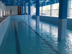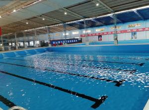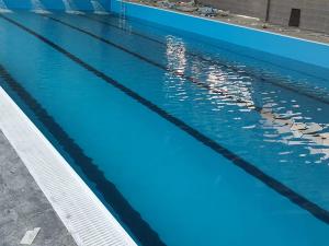 锦鲤游泳池含游泳池池体、上下水扶梯、池边通道及安全护栏、全套水处理系统、标准清污排污设备本系统能够保证泳池标准使用功能,其中泳池池体构造包含泳池池身框架结构、内外围板、池内防水胶膜和溢水槽,池体尺寸规格齐全;水处理系统按国家规范设计和配置,含有循环过滤设备、消毒设备、自动投药设备,水质达到国际泳联标准。